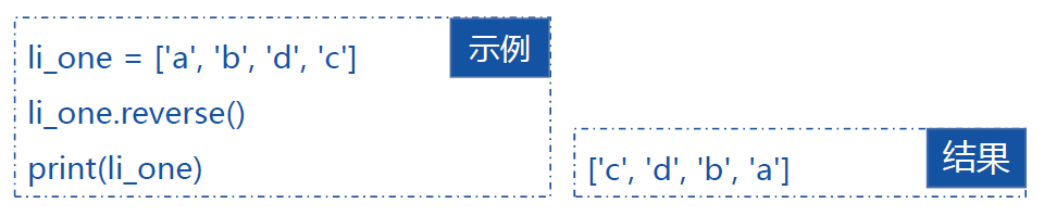 reverse()方法用于逆置列表,即把原列表中的元素从右至左依次排列存放。