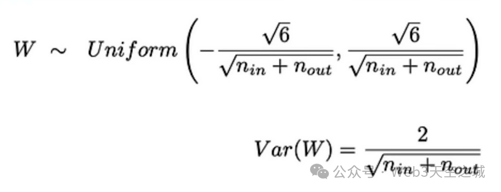 Xavier初始化尝试稳定网络的一种方法,并保持梯度以及激活一致和稳定是通过使用某些统计分布,具有一定的品质,可以确保权重的方差是恒定的。所以我们想得出一个分布,从中我们可以对初始权重进行采样,使用 n in(其中是进入该层的神经元数量)和 n out(其中 n out 是离开该层的神经元数量)结合统计分布使用。