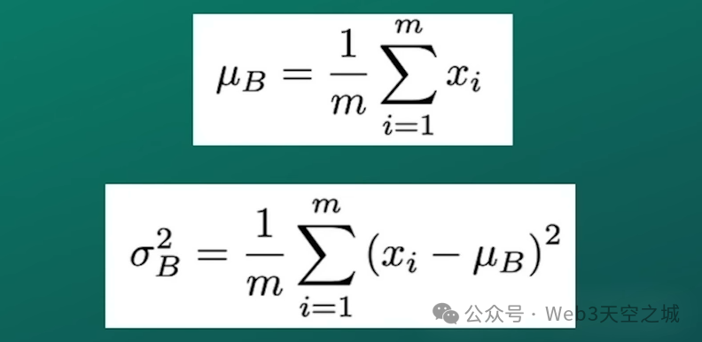 如果您使用过传统的机器学习模型,那么您很可能会熟悉标准化的概念,但让我们快速研究一下数学定义,以防万一,您还需要提供此信息作为答案的一部分。所以当我们查看这里时,您可以看到我们正在计算所有激活的数量的平均值,其中 xi 定义激活,m 是每批的观察数。我们将所有这些激活的总和除以每批的观察数。然后这给了我们批次平均值,即 mu 批次。然后我们还可以计算该批次对应的方差,通过获取此激活值 xi 并从中减去批次的平均值,并取其平方,即激活的平方差和批次的平均值,我们取它们的总和,对于所有批次观察,有 m 个元素,并将其除以每批次所有观察的数量。