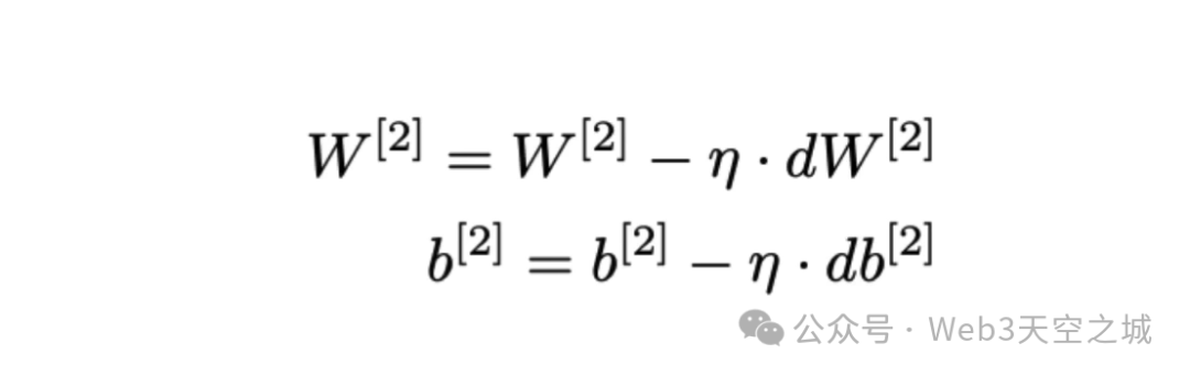 在这个过程中,我们从反向传播中获取梯度,然后我们使用这个 dv,它是损失函数相对于权重参数的一阶梯度,然后将其乘以步长 eta,然后我们从 v 中减去这个,即当前的权重参数,从而得到新的更新后的权重参数。我们也对第二个参数(即偏差因子)执行同样的操作。