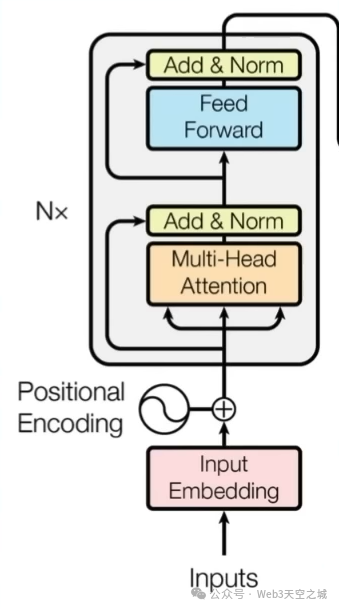 以Transformer模型为例,你需要的就是注意力。你可能会记得Transformer架构的左侧部分,即编码器部分。这部分也被用作GPT系列的一部分,因此是一般预训练模型。我们在哪里使用输入的Transformer模型呢?输入嵌入位于位置编码的顶部,基于正弦曲线和余弦曲线。然后,如果你熟悉Transformer模型,我们会将其转换为查询键和值,然后将其作为多头注意力层的输入。