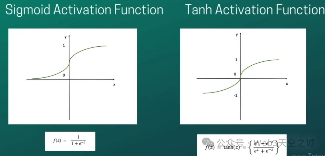 接下来我们要讲的激活函数是双曲正切激活函数,简称tanh函数。如你所见,双曲正切函数的形状与sigmoid激活函数非常相似。唯一的区别是,它将所有值转换为-1和1之间的值,而不是像sigmoid函数那样转换为0和1。因此,正如其名称所示,tang函数是基于几何主题的概念。如果您对正弦、余弦、正切和余切的概念有所了解,那么您对tang函数也会有所了解,因为这个函数正是基于这些概念。tang函数的作用是将所有的z分数转换为-1到1之间的值。