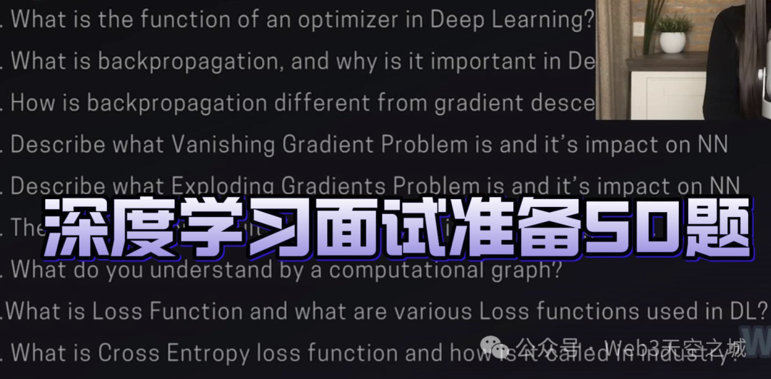 然后,这将是接下来的10个问题。更详细地介绍反向传播的概念、与梯度下降的关系,介绍梯度消失和爆炸问题。涵盖您在面试过程中会被问到的各种具体问题和与深度学习模型相关的问题。介绍损失函数和各种类型的流行损失函数,您在深度学习面试中可能会遇到这些问题。