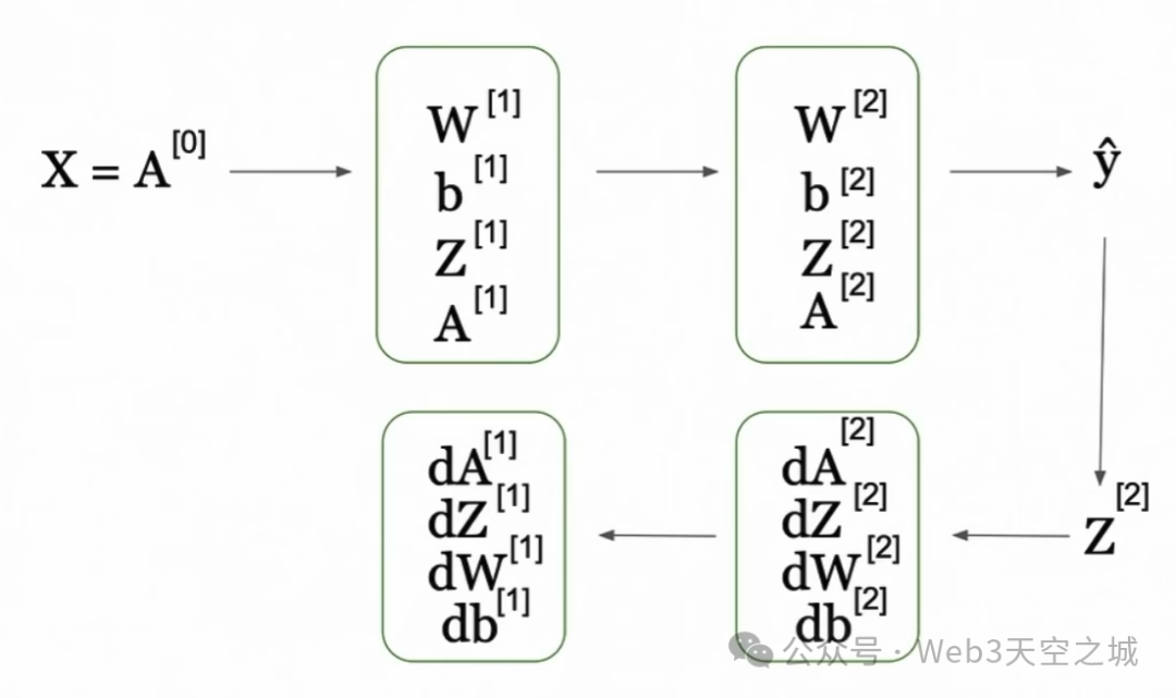 反向传播是计算梯度的过程,也就是损失函数相对于权重和偏差因子的一阶导数,以及我们希望改进的模型参数的影响。一旦我们计算出这个梯度,它就会告诉我们,如果我们对权重和参数做出一定的改变,损失函数将会改变多少。然后,我们可以利用这个梯度来更新模型中的参数。我们通过反向传播的过程来实现这一点,这与我们在前向传播中所做的正好相反。