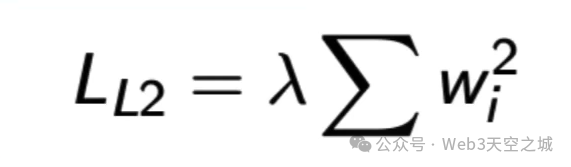 L2正则化,也称为富正则化,将权重值的平方添加到损失函数中,因此也称为L2范数。我们对权重进行平方,对特定层的权重进行求和,然后将其乘以正则化参数,也称为惩罚参数lambda。L2正则化的影响是,它会将权重缩小到零,但它以非常成比例的方式做到这一点,因此它试图使权重彼此更加相等。它会对大的权重产生更大的影响,因为它会尝试使其等于较小的权重,但它对较小的权重的影响较小。这样,它会尝试将权重按比例分布到不同的神经元,并尝试确保所有这些不同的神经元具有同等比例的影响。