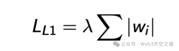 而L1正则化,也称为较小正则化,将权重的绝对值之和添加到损失函数中。L1正则化的工作方式是将这些绝对值相加,然后收缩权重接近零。在某些情况下,它会将某些权重,特别是那些小权重设置为完全等于零。因此,L1正则化以这种方式惩罚这些小权重,因此它会大幅缩小这些权重,并将它们设置为恰好为零。并且,对这些大权重的严厉程度也较低。通过这种方式,它还执行特征选择,因为所有神经元的权重为零的特征因此它们的权重变为零,这意味着它们不再对网络做出贡献。