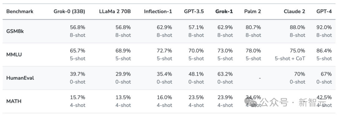 2023年11月,xAI推出了自己的第一代大语言模型Grok,正式加入大模型的战争。当时,Grok在推特上作为「Premium+」订阅服务的一部分,月费16美元。xAI表示,Grok的设计灵感来源于《银河系漫游指南》,它能够回答几乎所有问题,助力人类不分背景或政治立场地追求理解和知识。Grok最初的版本Grok-0拥有330亿参数,紧接着xAI推出了经过数次改进的Grok-1,为X上的Grok聊天机器人提供支持。根据xAI公布的数据,在GSM8K、HumanEval和MMLU等一系列基准测试中,Grok-1的表现超过了Llama-2-70B和GPT-3.5,虽然跟GPT-4还差得远。当时,Grok不仅能够处理X平台上实时生成的用户内容,还带有一点幽默感,给憨憨的AI注入了一丝活力。在提供最新热点事件信息(无论是政治还是体育)的同时,它还能抖个机灵,甚至偶尔讽刺一下。在数次嘲讽OpenAI是「CloseAI」之后,马斯克果真选择了开源自家大模型。