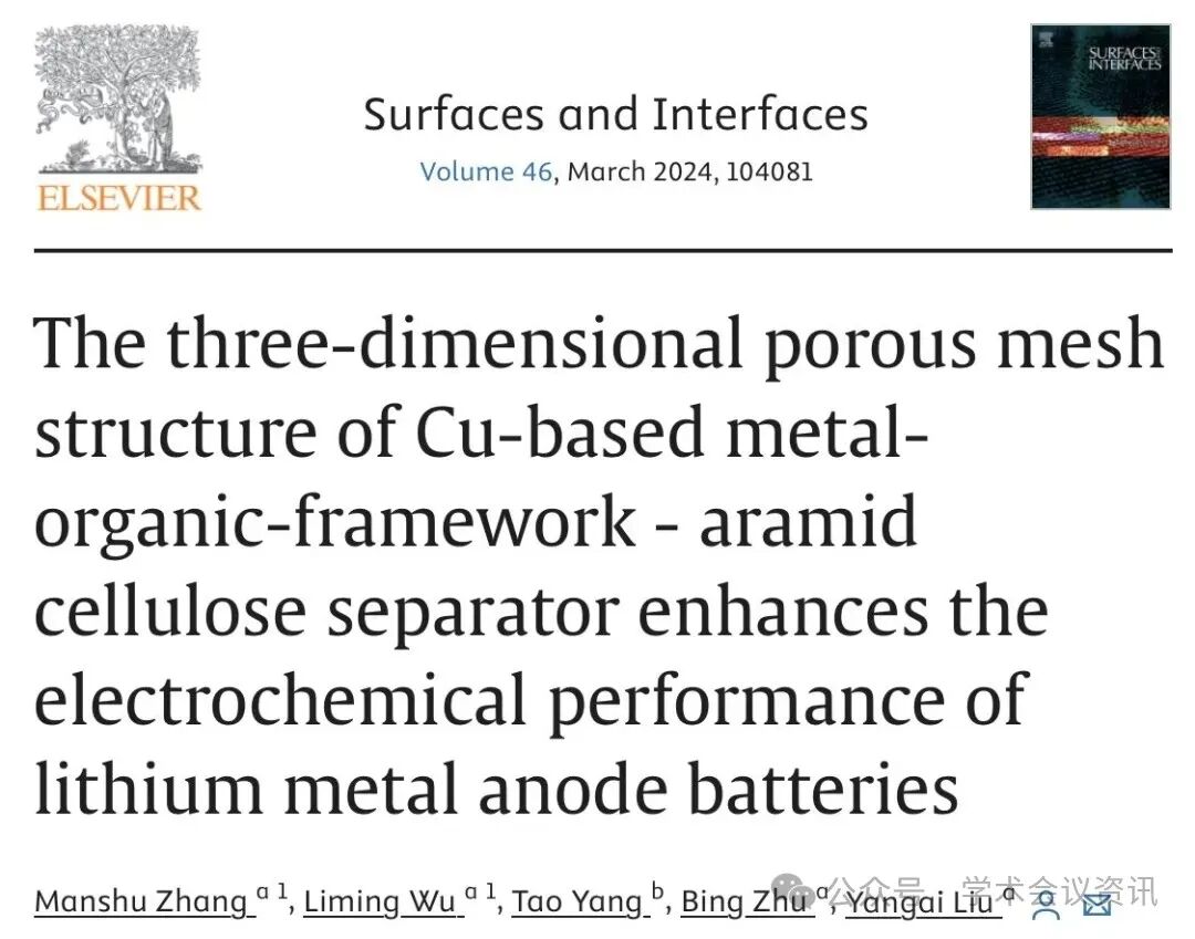 由期刊官网检索可知,该篇论文发表在爱思唯尔一本译名为“表面和界面”的SCI期刊上,收录在2024年3月期。