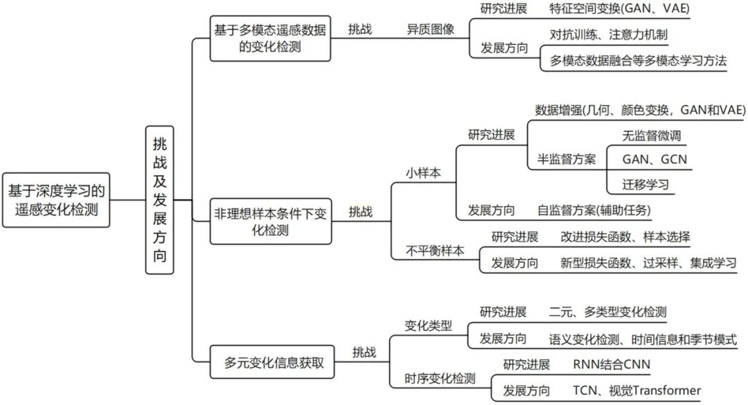 图7 基于深度学习的遥感变化检测面临挑战及发展方向