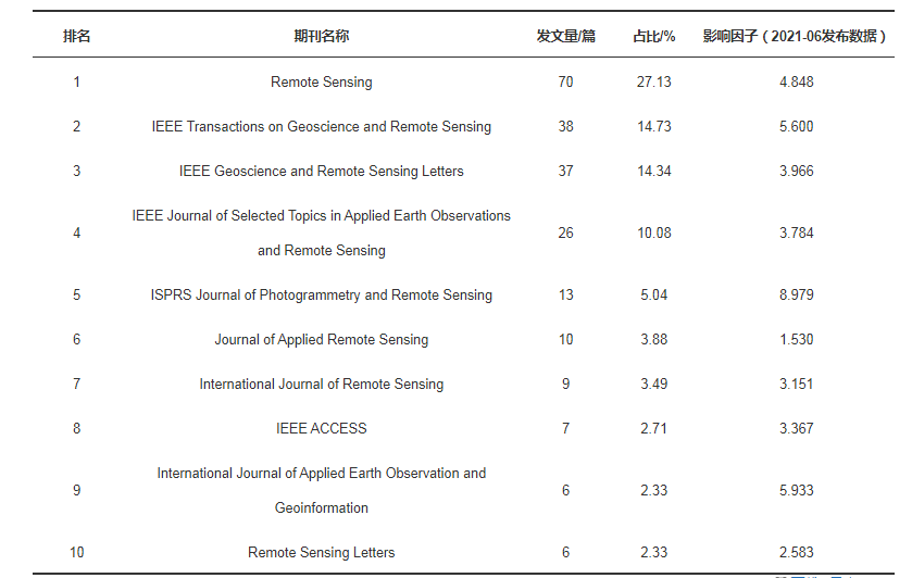 表1 基于深度学习的遥感变化检测研究出版量排名前10期刊