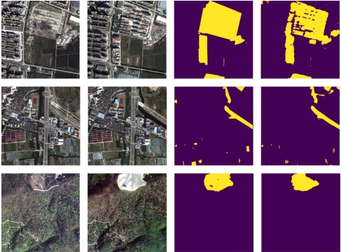 多元变化信息获取:多元变化信息 (如变化类型、变化时间) 对于土地规划、城市管理和灾害评估等实际应用具有重要价值,深度学习技术在获取多元变化信息上亟需突破。(1)多类型变化监测:“多类型变化检测”能够突出变化区域和类型。进一步地,最近受到关注的“语义变化检测”生成每个时相图像的语义变化图 (即变化区域及其在每个时相影像中的地物类别图),例如分类后比较的方法,但是其存在分类误差累积和时间相关性考虑不足的问题。其它方法则需克服大规模标注样本获取困难的问题。(2)时序变化检测:时序变化检测可以建模时空相关性,提供长时期的变化信息,目前大多基于RNN展开。由于存在多次变化、季节性变化等复杂变化情况,现有模型在提取时序图像中的长期空间-时间相关性信息方面具有困难,并且缺乏公开数据集,深度学习在时序变化检测的应用较少,有待进一步研究。基于自注意力机制的Transformer在建模时序数据的长期依赖性上具有优势,为时序变化检测开辟了新途径。