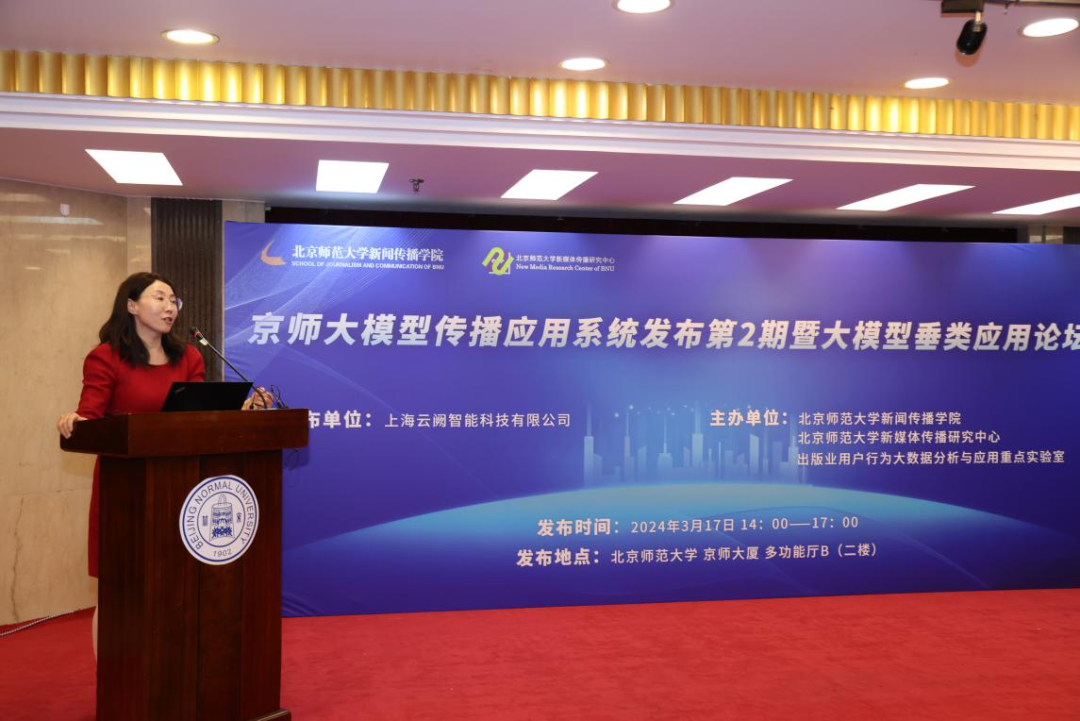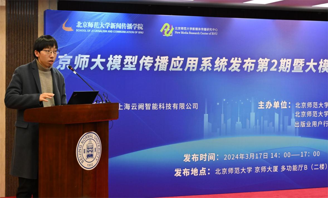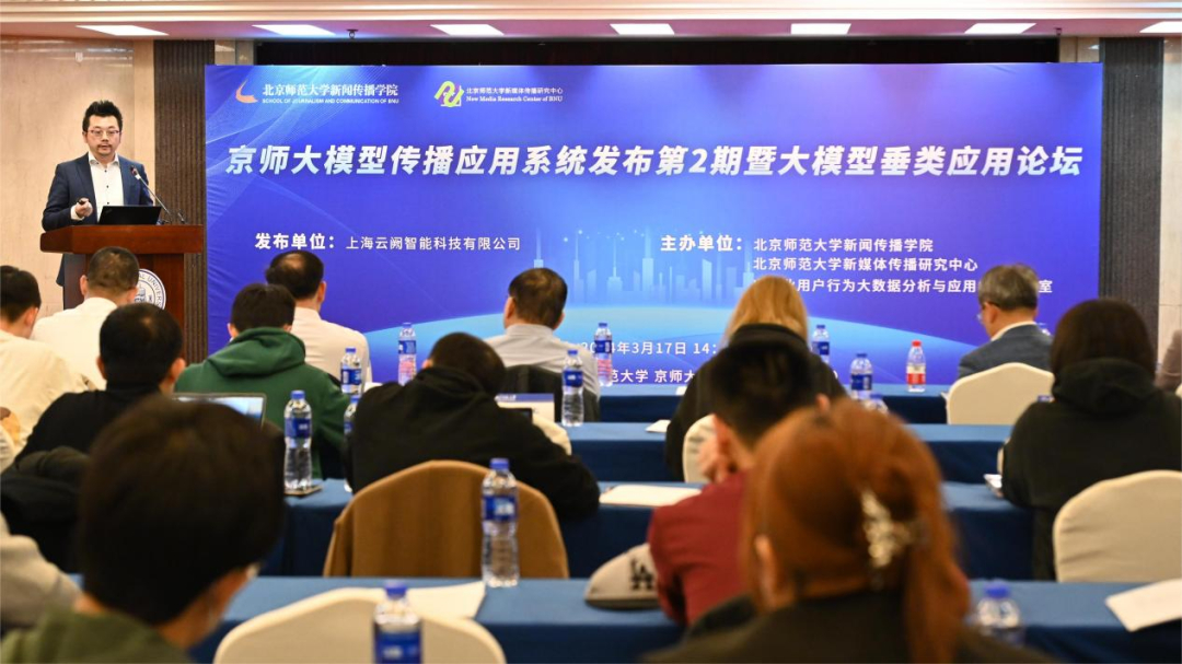 2024年3月17日下午,京师大模型传播应用系统发布第2期暨大模型垂类应用论坛在北京师范大学成功举行。会上,上海云阙智能科技有限公司发布“营销垂直大模型·云阙AI平台”,随后来自北京师范大学、北京理工大学等高校和智谱AI、宣亚国际等业界嘉宾共同围绕大语言模型时代的产业赋能、行业生态、互联网发展趋势等话题分享见解。