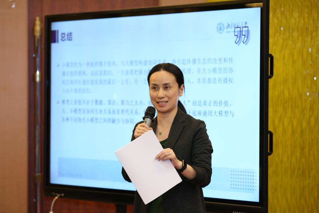 教育部“长江学者”特聘教授、北京师范大学新闻传播学院教授、北京师范大学传播创新与未来媒体实验平台主任喻国明以《小有小的用处:大模型传播生态下的小模型》为题,分享了在大模型部署遭遇困境时,小模型在落地应用时的独特优势。小模型具有的轻参数、低成本、方便运行等特点,不仅可以缓解大模型由价值偏态与信息供给窄化造成的信息茧房,还可以作为认知、情感与价值中转站反哺微调大模型。最后他指出,要把握小模型的内在逻辑机理,在大小模型的协同互构中打通价值实现的最后一公里,构建模型融合的新型生态。