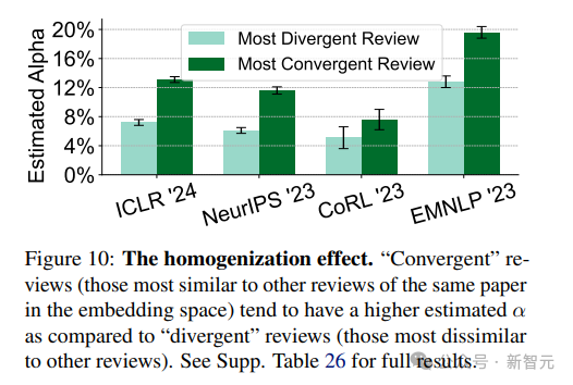 4. 同质化效应:与同论文其他审稿意见越相似的评审,越可能用GPT
