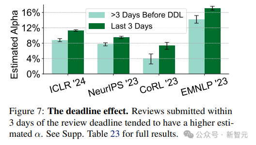 1. 截至日期效应:在审稿截止日期前3天内提交的评审往往更倾向于用GPT