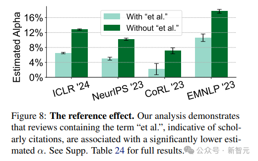 2. 参考文献效应:包含「et al.」一词的评审,即有学术引用的评审,更不会用GPT