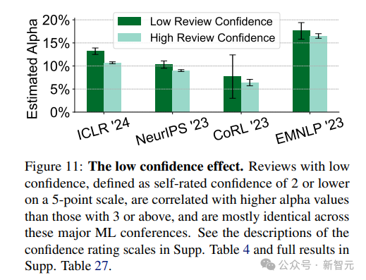 5. 低置信度效应:自评置信度在5分制度中为2分或以下的评审与较高置信度(3分或以上)的评审相比,更可能用了GPT