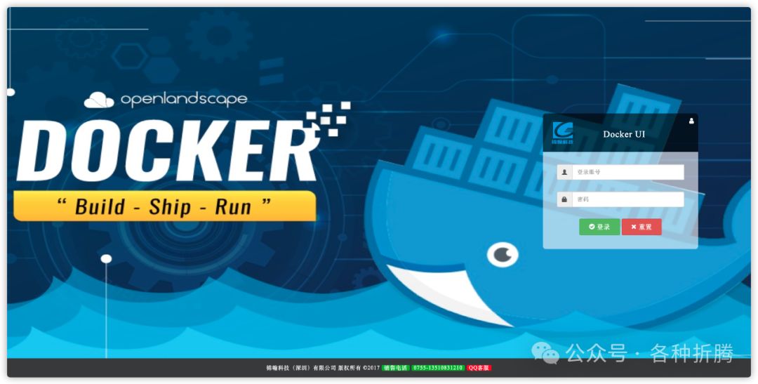# 新建文件夹 docker.ui mkdir -p /volume1/docker/docker.ui# 进入 docker.ui 目录 cd /volume1/docker/docker.ui# 将 docker-compose.yml 放入当前目录 # 一键启动 docker-compose up -d运行 在浏览器中输入 http://群晖IP:8999 就能看到登录界面