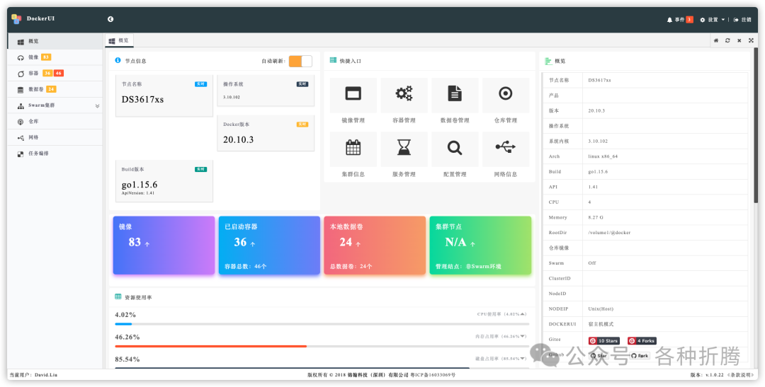 这是国内一家公司开发的,原生的中文界面,对国内用户比较友好,如果用不惯 Portainer 可以试试这款
