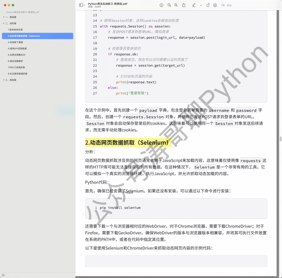 接着,将进入到动态网页数据抓取的领域。通过学习Selenium模拟浏览器操作,处理JavaScript渲染的页面,并通过XPath或CSS选择器提取数据,能够应对更加复杂的网页结构,实现进阶级的爬虫项目。