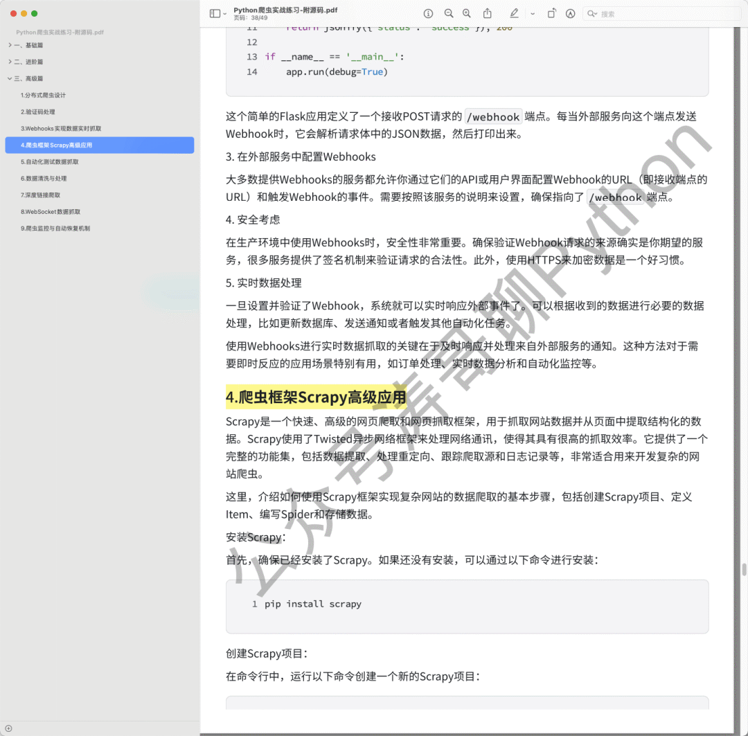 高级项目中,需要练习分布式爬虫以及处理验证码、Webhooks实现数据实时抓取等,保证爬取数据的稳定性和准确性。