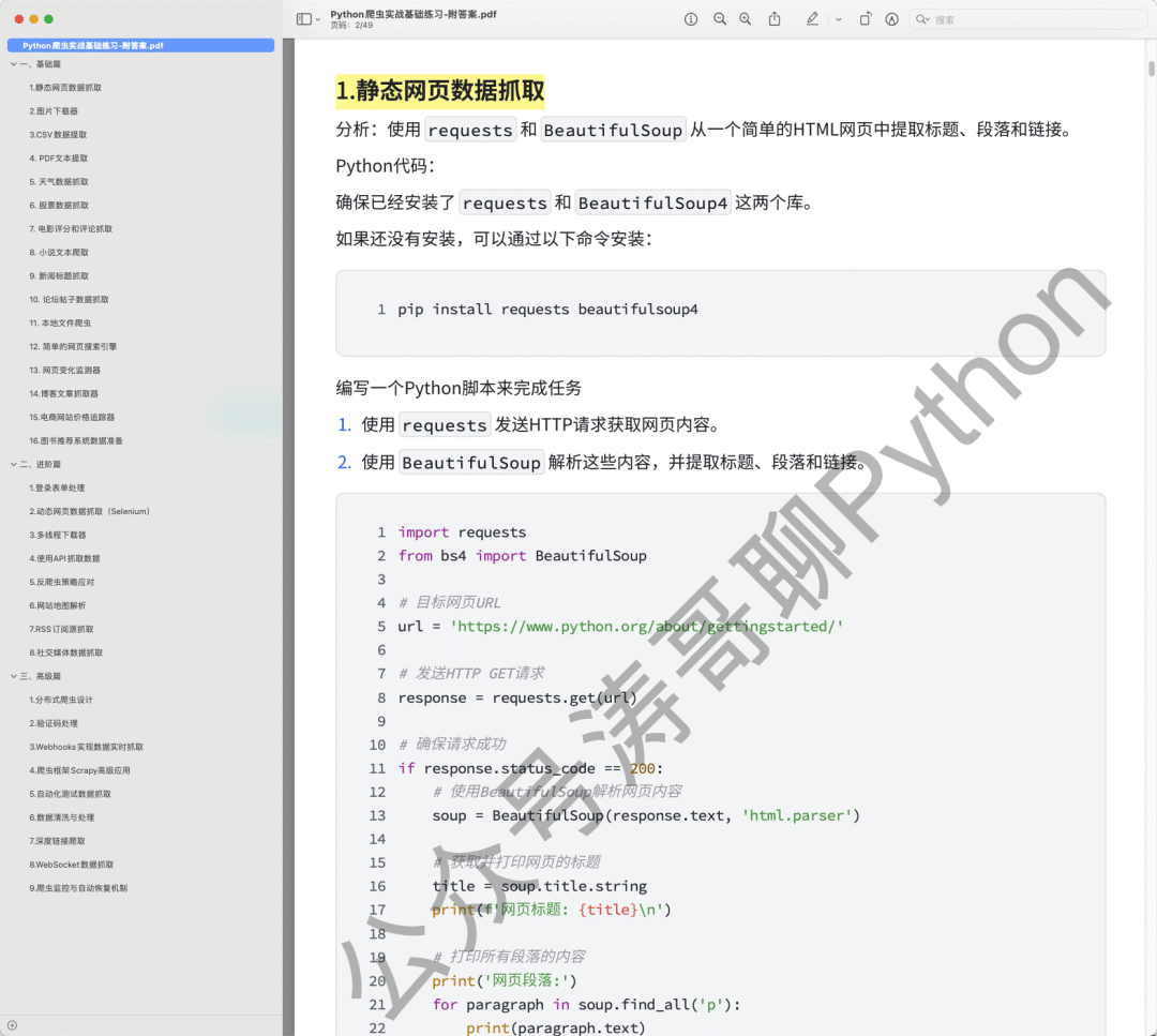 这份资源涵盖了从基础到高级的内容,旨在帮助大家逐步掌握爬虫技术。