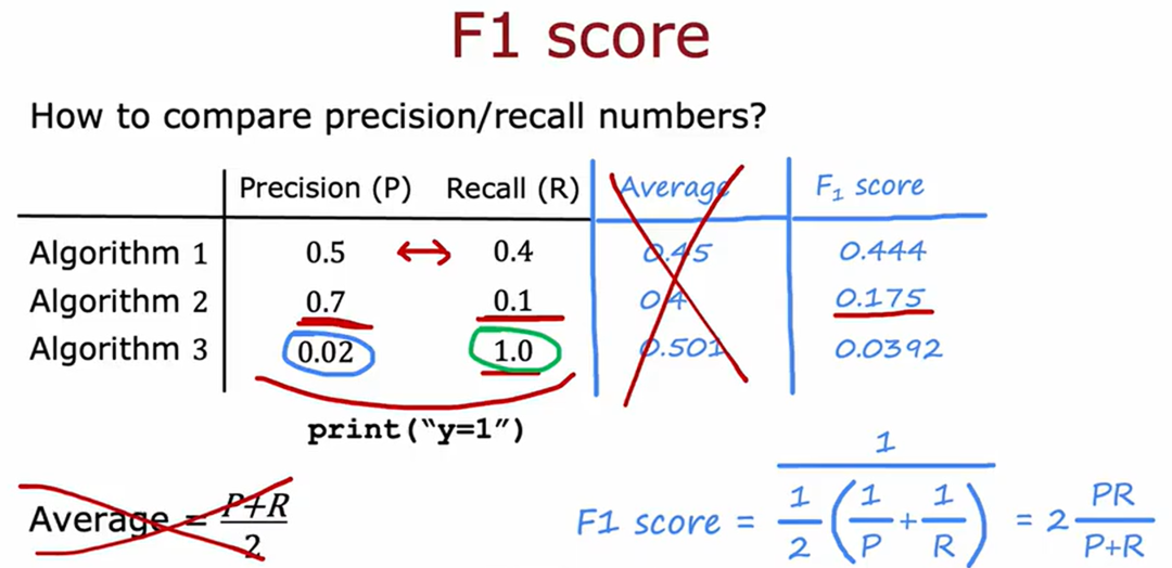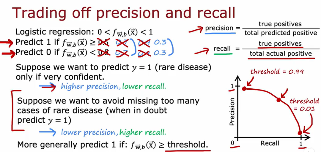 注:经常需要在精确率和召回率之间做权衡,高的精确率往往对应低的召回率。可以通过调整阈值来进行选择。