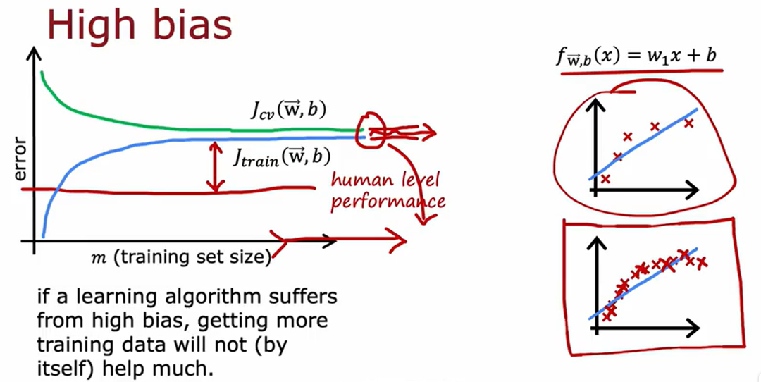 注:如果模型本身具有高偏差,则无法训练更多的数据。