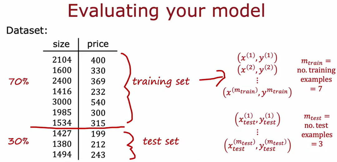 用训练集(training set)训练模型参数,再用测试集(testing set)进行效果测试,可以生成训练集和测试集的损失函数随迭代轮次的变化曲线来观察。