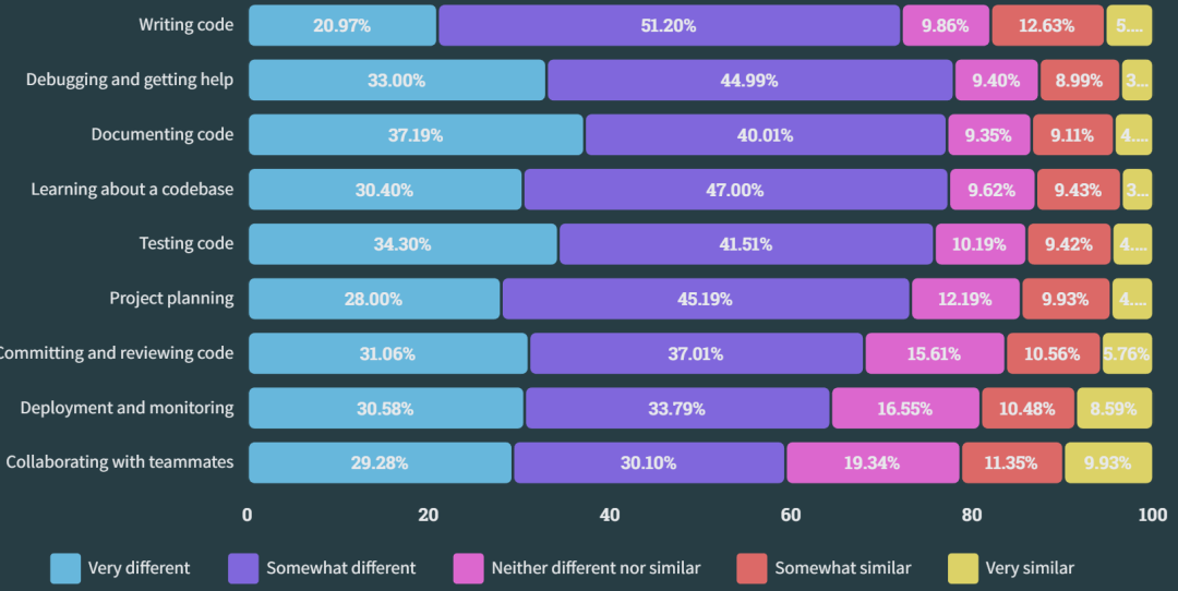 绝大部分开发者使用 AI 工具帮助编写代码,其他的用途包括调试、写文档、学习代码库,以及测试等。
