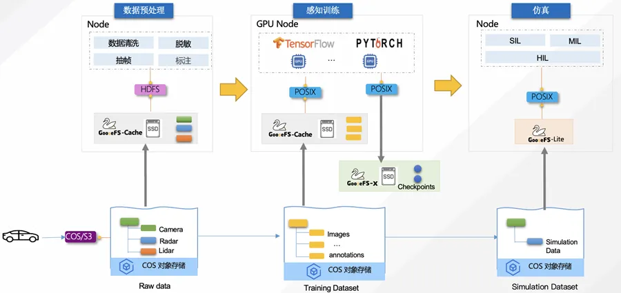 在自动驾驶技术的发展中,数据的采集、存储、标注等环节对于感知训练、仿真和评测至关重要。腾讯云GooseFS产品系列,为自动驾驶模型训练提供了高性能的数据存储和加速服务。这一解决方案通过优化数据的读取和写入性能,特别是在处理PB量级的训练数据时,显著提升了训练效率。