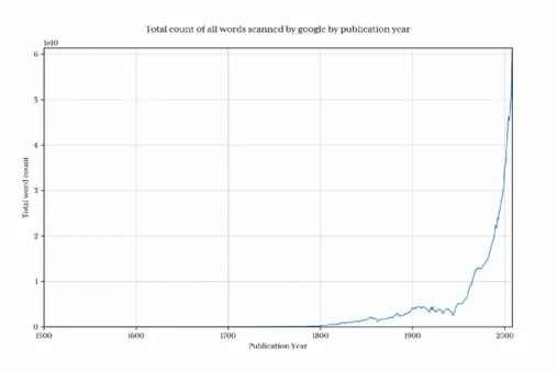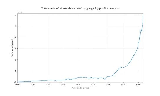绘制出这个图来展示谷歌每年收集了多少单词: