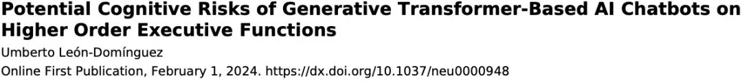 同月《神经心理学》杂志发表了一篇关于AI可能影响人类认知发展的论文。狠狠打了硅基君的脸。