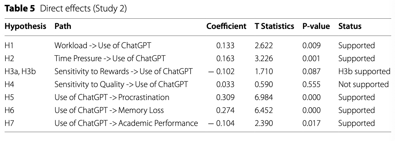 一句话,研究发现使用ChatGPT对学生个人能力和学业成绩都会产生显著的不利影响。越依赖ChatGPT的学生,越容易拖延,记忆障碍也更频繁出现,并对学业成绩产生负面影响。