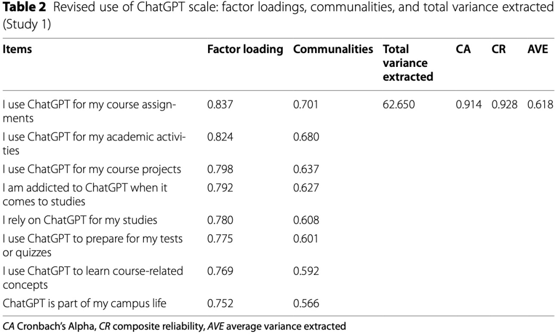 首先,研究人员开发了一个变量表,用来衡量学生在学习上使用ChatGPT情况。