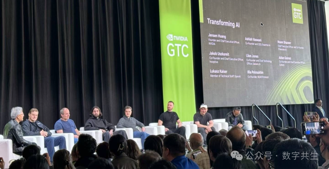 下图是GTC2024大会上,英伟达总裁黄仁勋和Tansformer的7位作者的访谈现场。难以想象2017年的这篇【Attention is All You Need!】论文彻底改变了整个行业的游戏规则。看着他们在台上侃侃而谈,突然觉得自己能够完整经历这次技术变革,而且还能在AI这股浪潮中跟上节奏,真的是一件很幸运的事情!