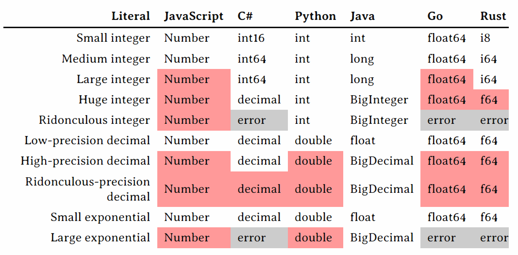JSON 有两个主要的标准定义(Ecma-404 和 RFC-8259),然而现实的各种编程语言和 JSON 库在处理数字的精度和范围时,却存在诸多差异。文章对此作了一些对比和总结。
