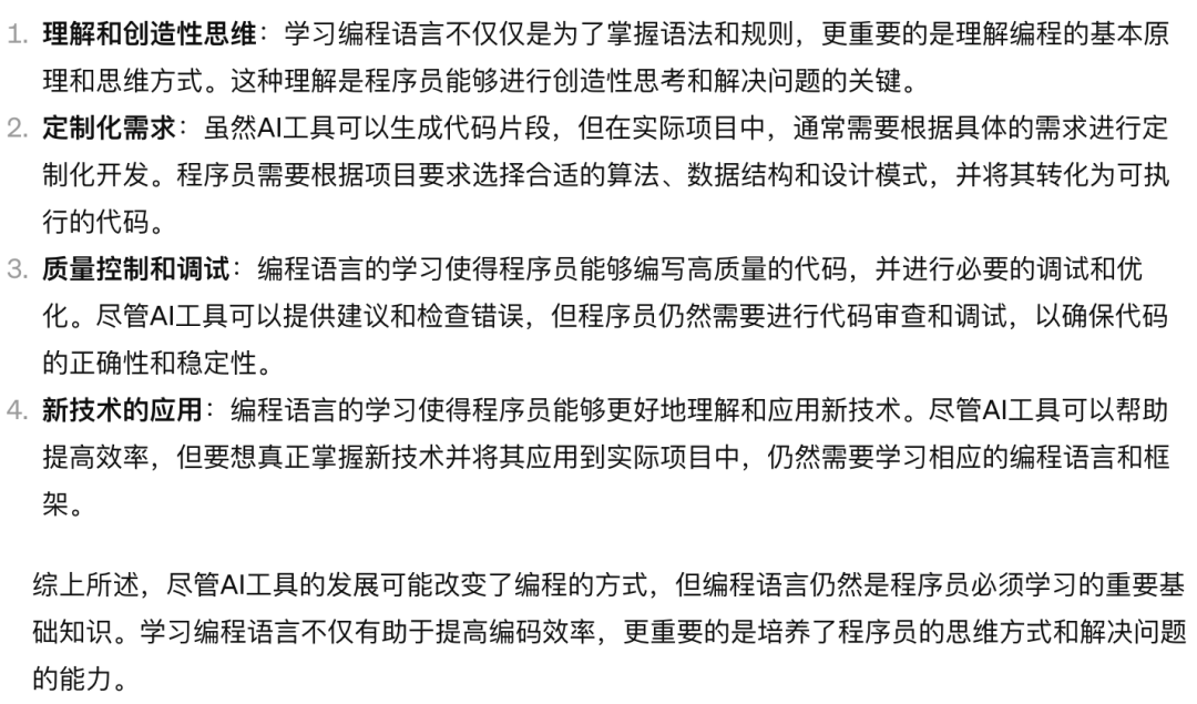 尽管 AI 工具在编程领域的发展和应用可以提供帮助,但程序员仍然需要学习编程语言。以下是几个原因: