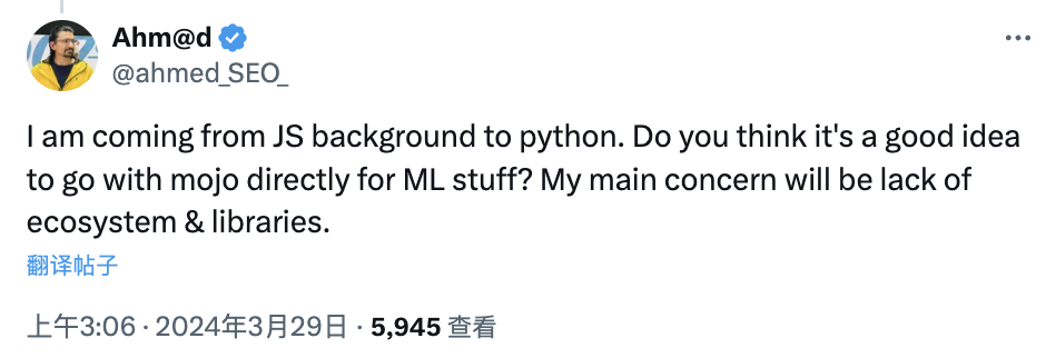 基于此,也有人担心自己刚学了 Python,难道又要开始学 Mojo?