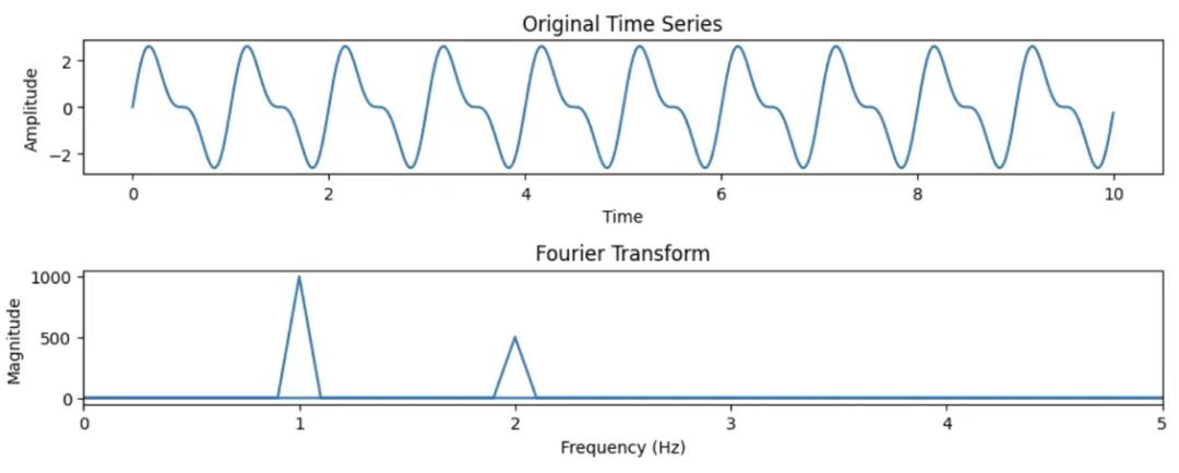 # Generate a sample time series dataset # You can replace this with your own time series data # Ensure that the data is in a NumPy array or a list time = np.arange(0, 10, 0.01) # Time values from 0 to 10 with a step of 0.01 signal = 2 * np.sin(2 * np.pi * 1 * time) + 1 * np.sin(2 * np.pi * 2 * time)