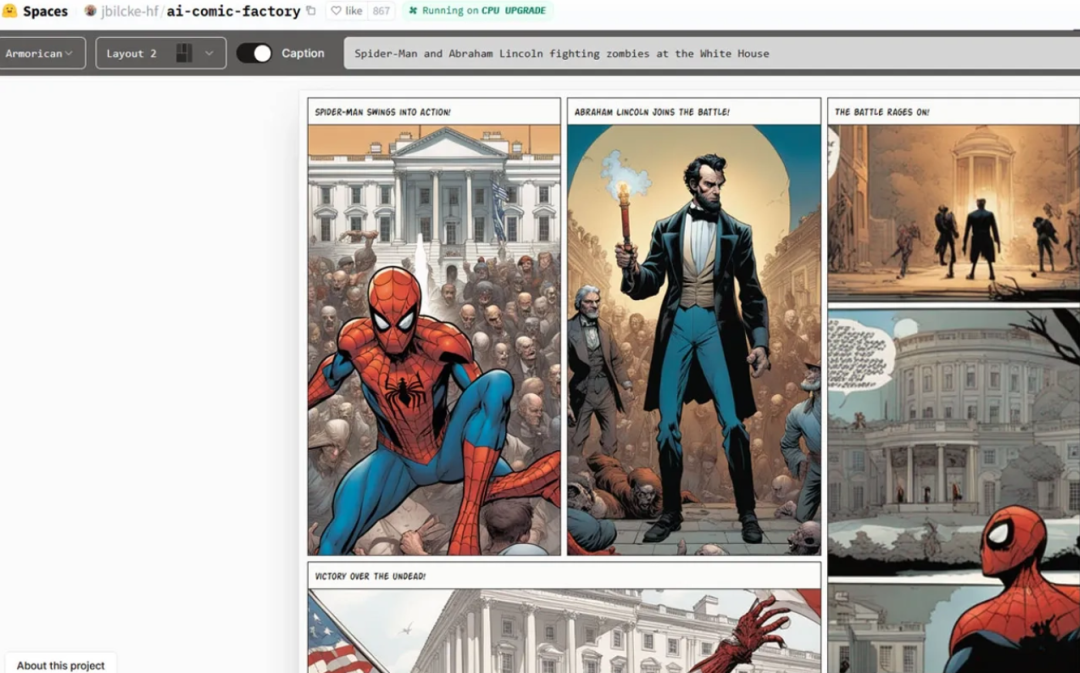 AI可以自动生成漫画了,Comic Factory 是一个基于Hugging Face的免费开源的在线AI漫画生成工具,使用LLM + SDXL开发,用户只需输入文字描述提示词,AI就能生成精美的漫画作品,生成的照片支持直接无损放大,无需学习成本,适用于各年龄层,广泛应用于社交平台和短视频应用。