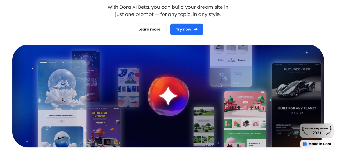 Dora AI是一款 AI 网站生成神器,它是新推出的一个无代码网站构建平台,借助 AI 生成技术,只通过文本提示就能快速生成可编辑、可交互的网站。