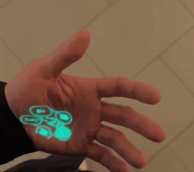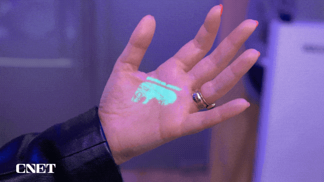 与手势交互密不可分的是那基于“激光墨水显示”技术的掌心投影——