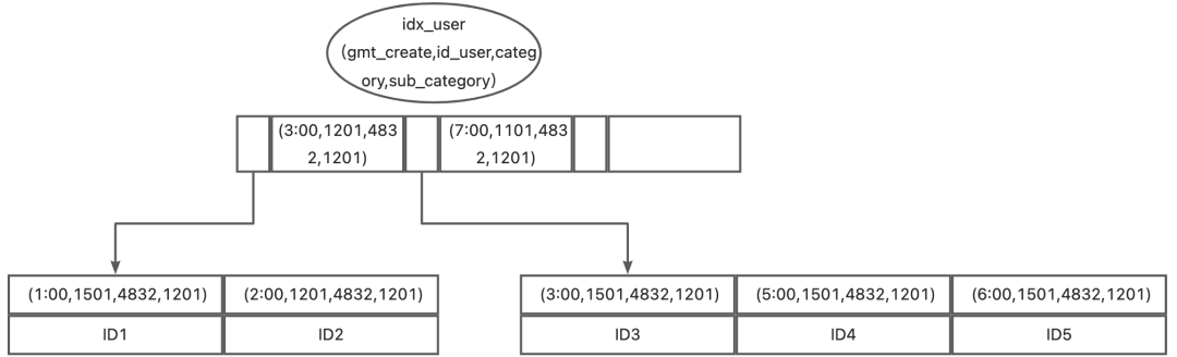 idx_user(gmt_create,id_user,category,sub_category)为什么建立这个索引?大概是因为业务需求,有以上的条件查询的语句较多。但是该索引合理吗?