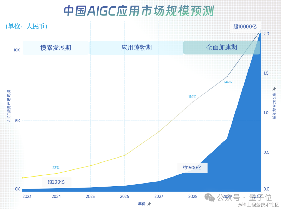 今年中国 AIGC 应用市场规模将达 「200 亿」,2030 年达「万亿规模」;