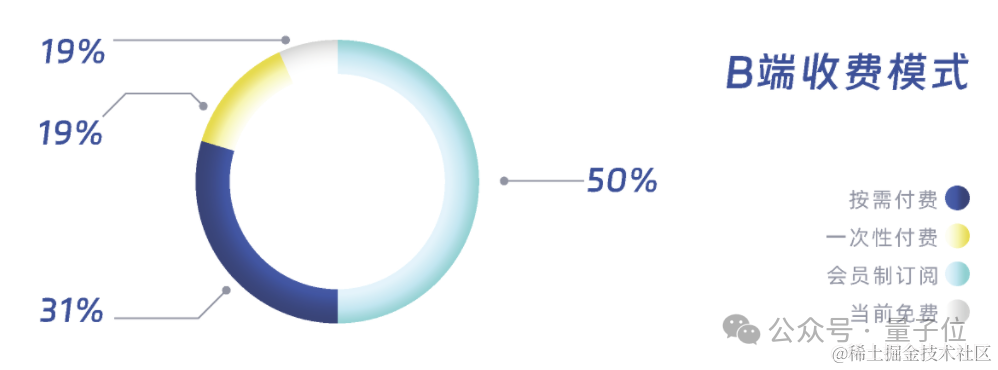 其中 B 端产品从通用场景到垂直赛道分布较均匀,收入模式以会员订阅和按需付费为主,「商业模式较为清晰」,虽然(纯 B 端)占比只有 31%,但 「80%」 以上的产品均实现营收。