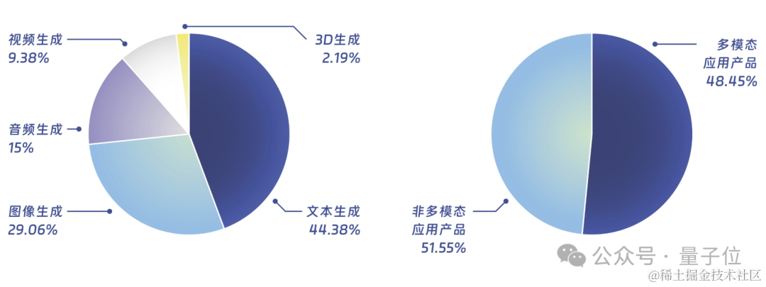 而作为必然趋势的多模态(能识别和理解两种及以上模态数据的产品),目前的占比已经达到了 48%,未来还有较大的成长空间。
