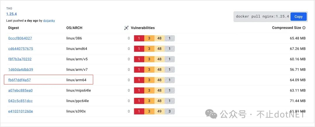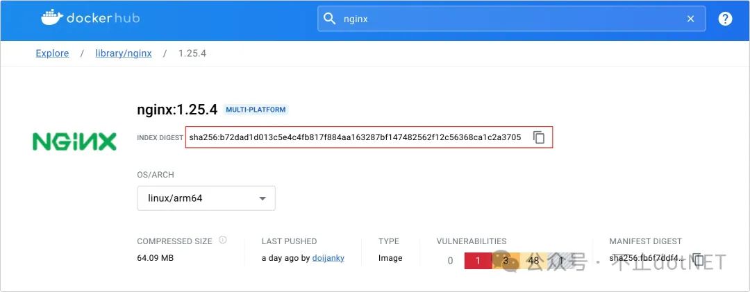 1、访问 https://hub.docker.com/_/nginx/tags?page=&page_size=&ordering=&name=1.25.4 ,进入到 Nginx 的 1.25.4 版本的页面。