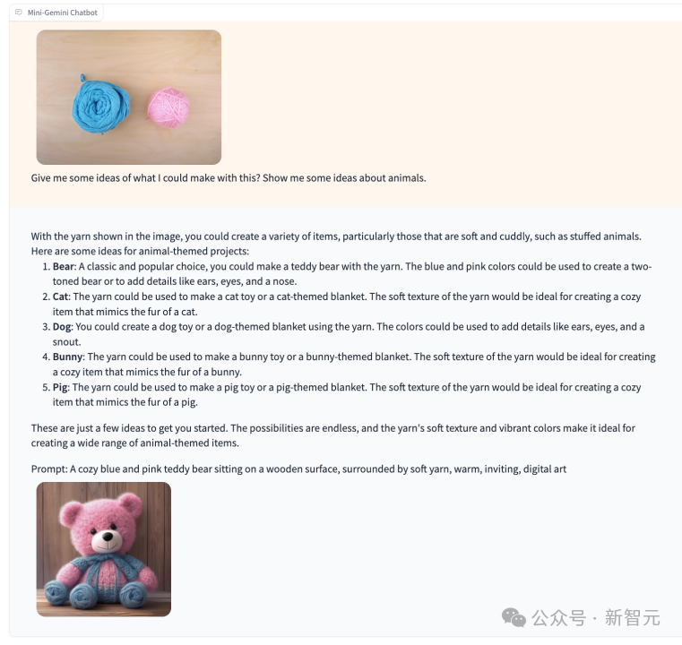 当用户给出两个毛线团并问出能用它们做什么时,Gemini可以识别出图片内容并给出相应的建议。