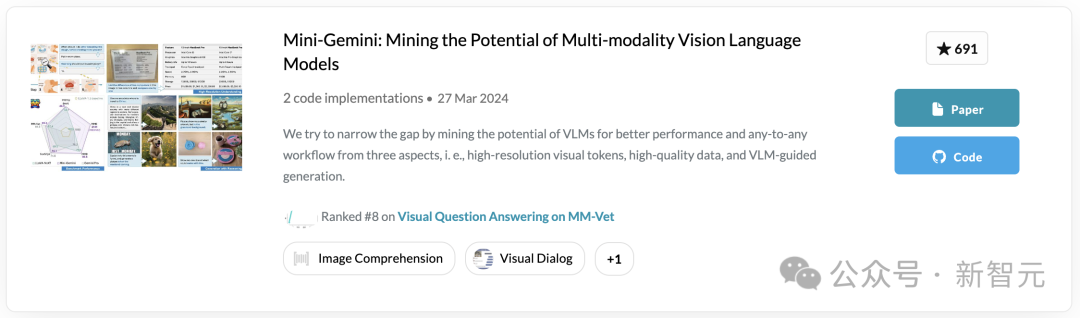 刷爆多模态任务榜单,超强视觉语言模型Mini-Gemini来了!效果堪称是开源社区版的GPT-4+DALL-E 3王炸组合。不仅如此,这款由港中文终身教授贾佳亚团队提出的多模态模型,一经发布便登上了PaperWithCode热榜。Demo地址: http://103.170.5.190:7860/